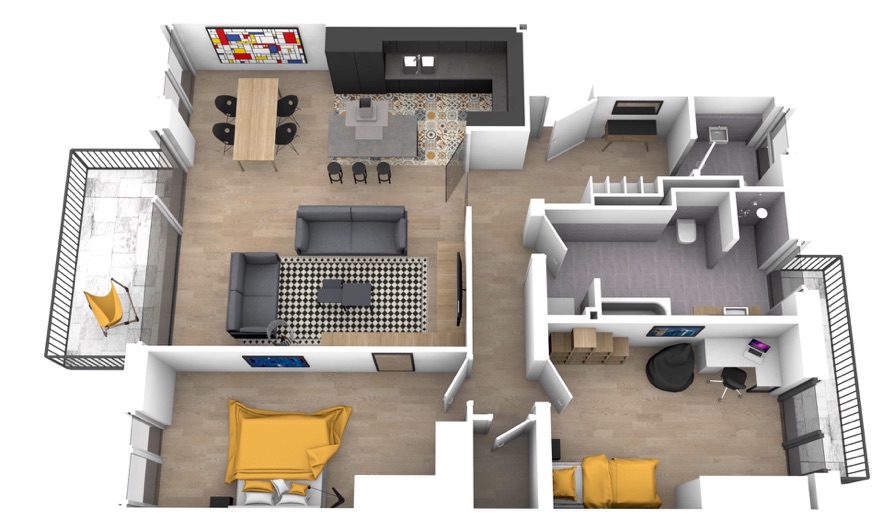 Die Wohnungen sind großzügig geschnitten mit offenen Wohn- Eß- und Küchenbereichen. Alle Wohnungen haben getrennte Gäste-WCs, zum Teil mit Dusche.